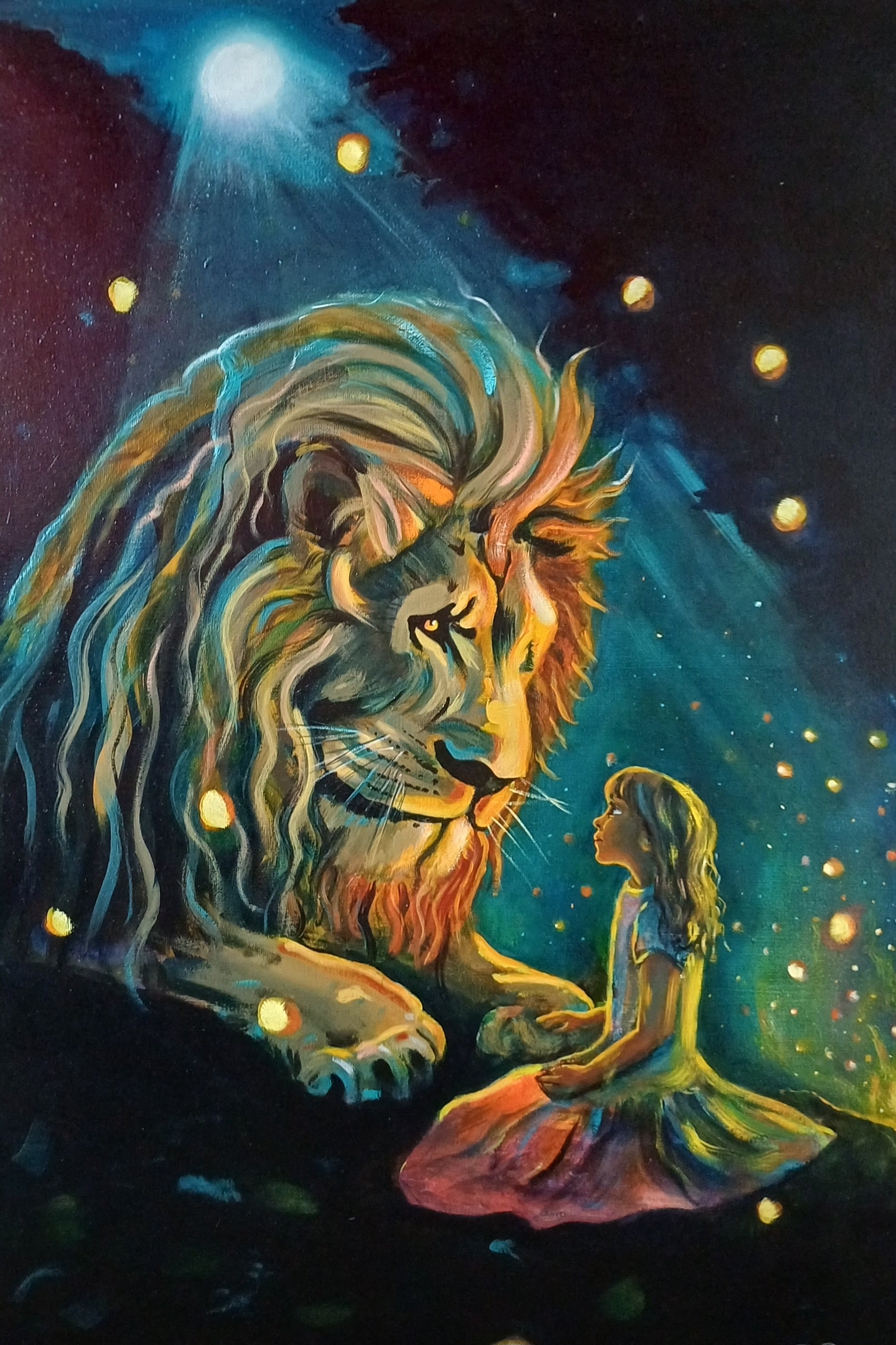 “Eternal Trust” captures the quiet transfer of courage between guardian and child…where strength is not imposed, but shared. The lion embodies wisdom and fierce protection, while the child reflects openness and faith, reminding us that true courage is often inherited through connection.